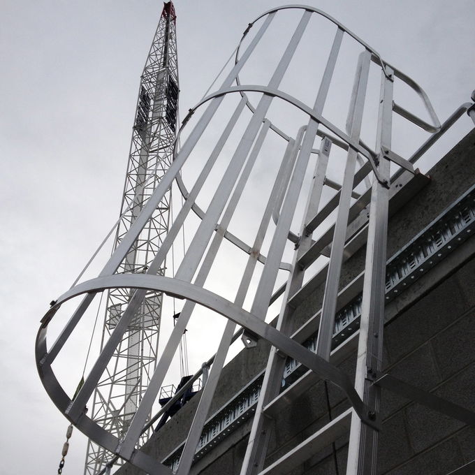 This project consists of 58 floor set anchors, 10 wall set anchors, 2 horizontal lifelines, 20 anchors under the bridge walkways, and a caged access ladder.
